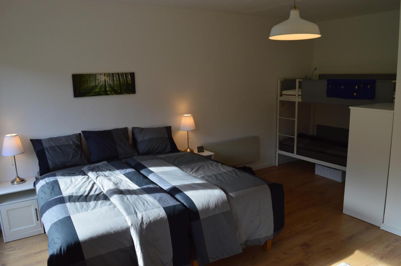 Two-Bedroom Apartment. This spacious apartment features 1 living room, 2 separate bedrooms and 2 bathrooms with a shower and free toiletries. The fully equipped kitchen has a stovetop, a refrigerator, a dishwasher and an oven. The apartment features a flat-screen TV with streaming services, a washing machine, a private entrance, a tea and coffee maker as well as mountain views. The unit has 5 beds.