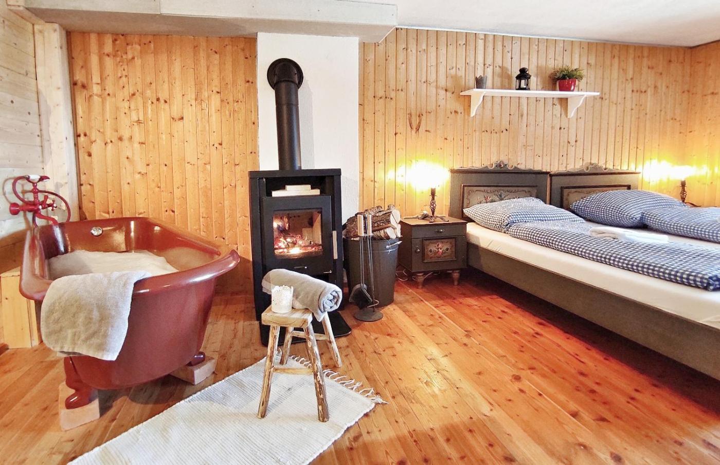Four-Bedroom Chalet. This chalet offers a fireplace. Featuring a private entrance, this spacious chalet also comprises 4 bedrooms, a seating area and 3 bathrooms with a walk-in shower and a bath. Guests will find a stovetop, a refrigerator, a dishwasher and kitchenware in the well-fitted kitchen. The chalet also provides guests with a barbecue. Boasting a terrace with lake views, this chalet also provides a washing machine and a flat-screen TV with satellite channels. The unit offers 8 beds.