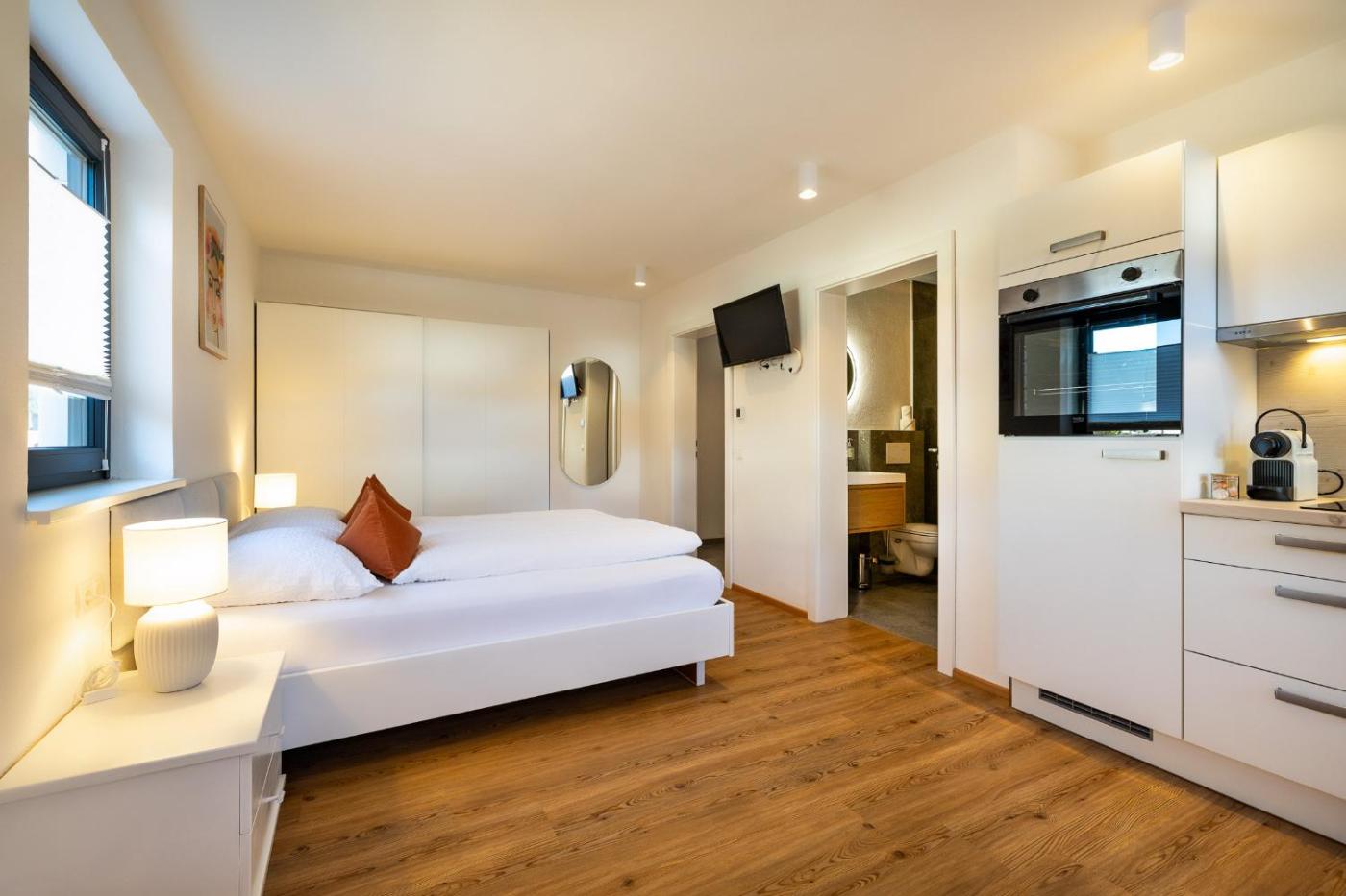 Studio with Balcony. In the well-equipped kitchen, guests will find a stovetop, a refrigerator, a dishwasher and kitchenware. The studio offers a private entrance, a coffee machine, a terrace with garden views as well as a private bathroom boasting a walk-in shower. The unit has 1 bed.
