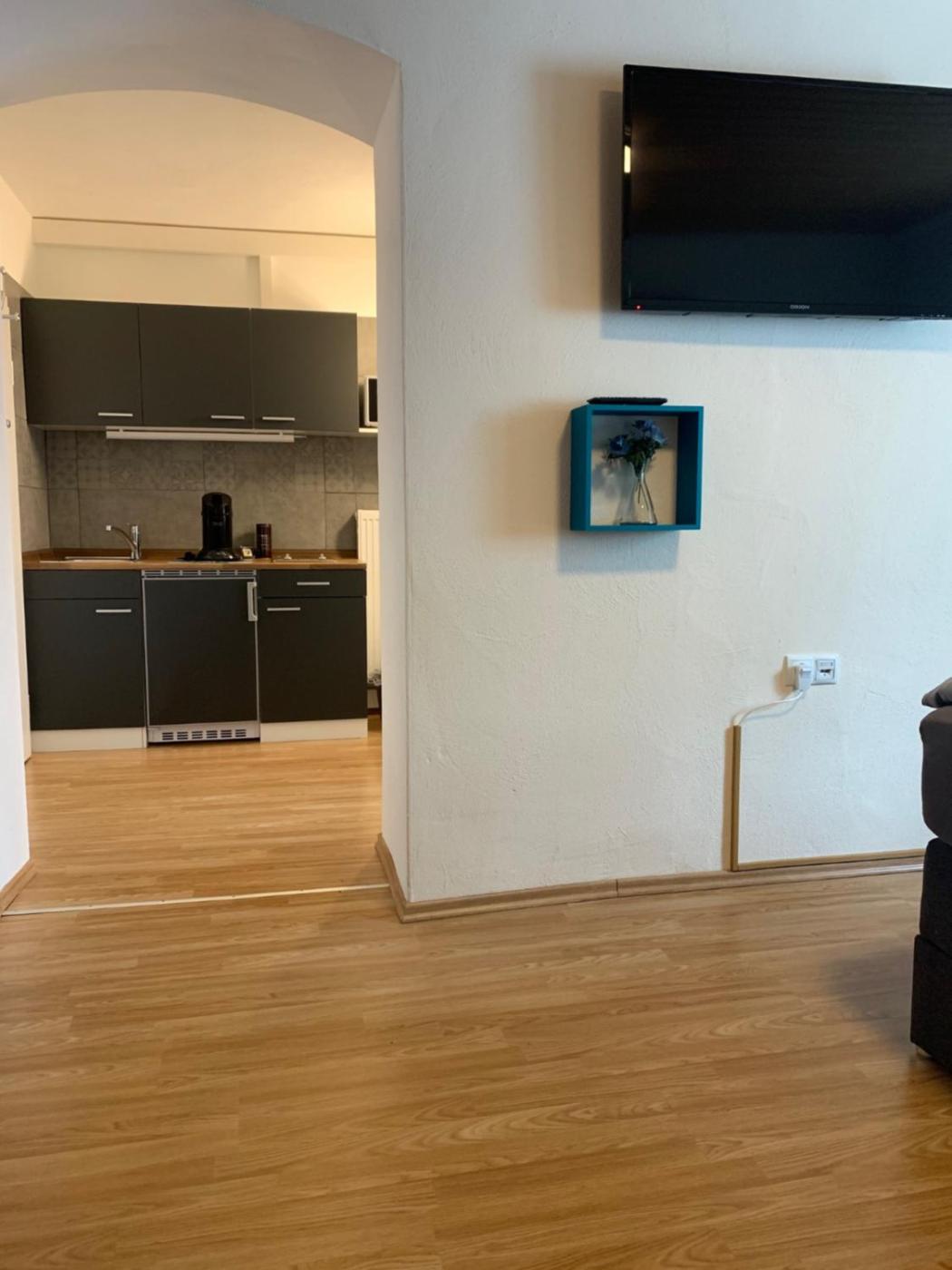 Studio Apartment. This apartment includes a kitchen, a seating area, 1 separate bedroom and 1 bathroom with a shower and a hairdryer. Guests can make meals in the kitchen that is fitted with a stovetop, a refrigerator, kitchenware and a microwave. The apartment offers a tea and coffee maker, a dining area, a wardrobe, a flat-screen TV with satellite channels, as well as ancourtyard view. The unit has 1 bed. ;