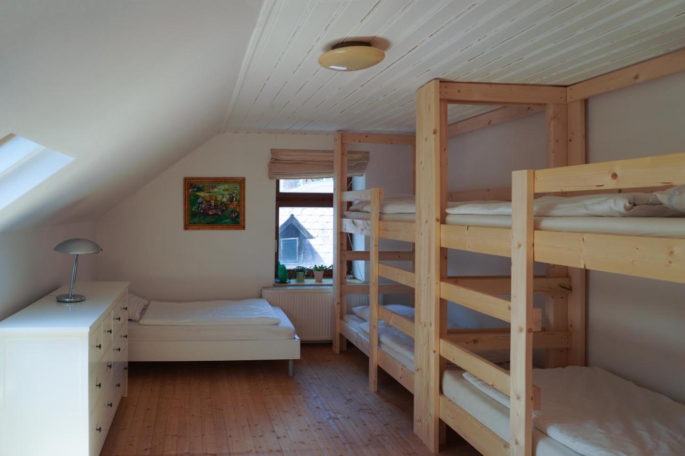 Quadruple Room. The quadruple room provides a washing machine, a wardrobe, as well as a shared bathroom featuring a shower and a hairdryer. The quadruple room offers parquet floors, heating, as well as an outdoor dining area and outdoor furniture. The unit offers 4 beds. ;