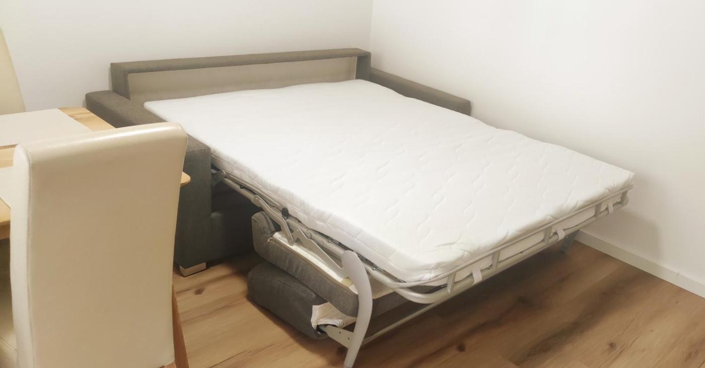 Standard Apartment with Balcony. Spacious apartment with a bedroom with a bunk bed, a living room with a sofa bed, a flat-screen satellite TV and a dining area, a kitchen, a bathroom, and a balcony overlooking the mountains.