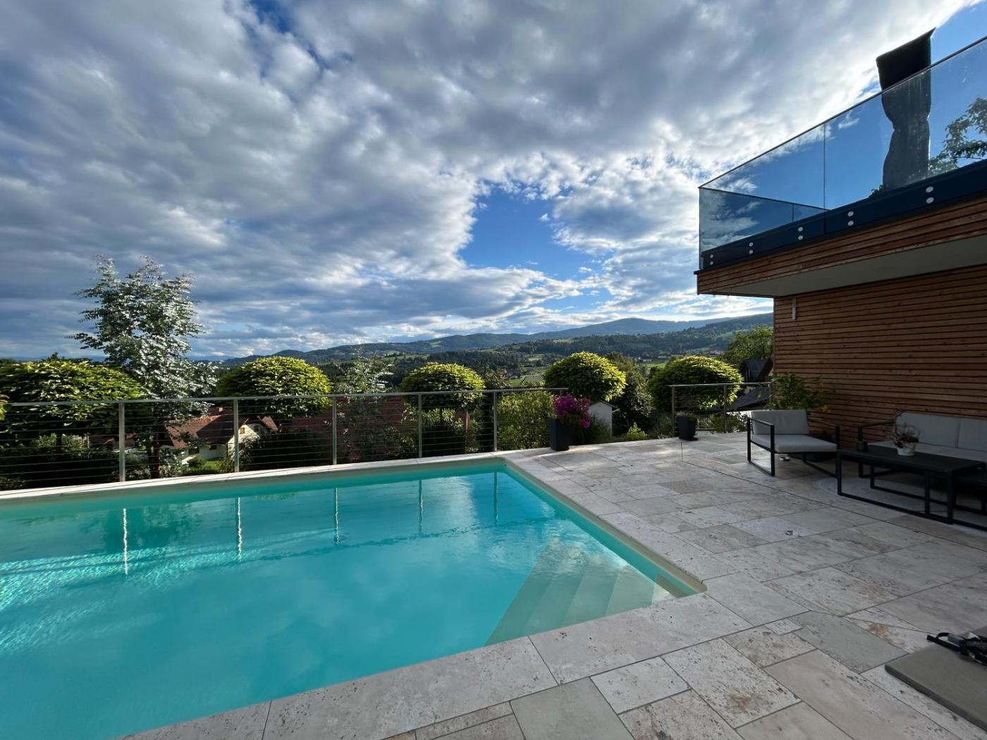 Featuring air-conditioned accommodation with a private pool, pool view and a patio, Traumhaus in den Weinbergen - max 8 Personen - mit Self-Check-in is located in Sankt Stefan ob Stainz. This property offers access to a balcony, table tennis, free private parking and free WiFi. The villa has an outdoor fireplace and a sauna.