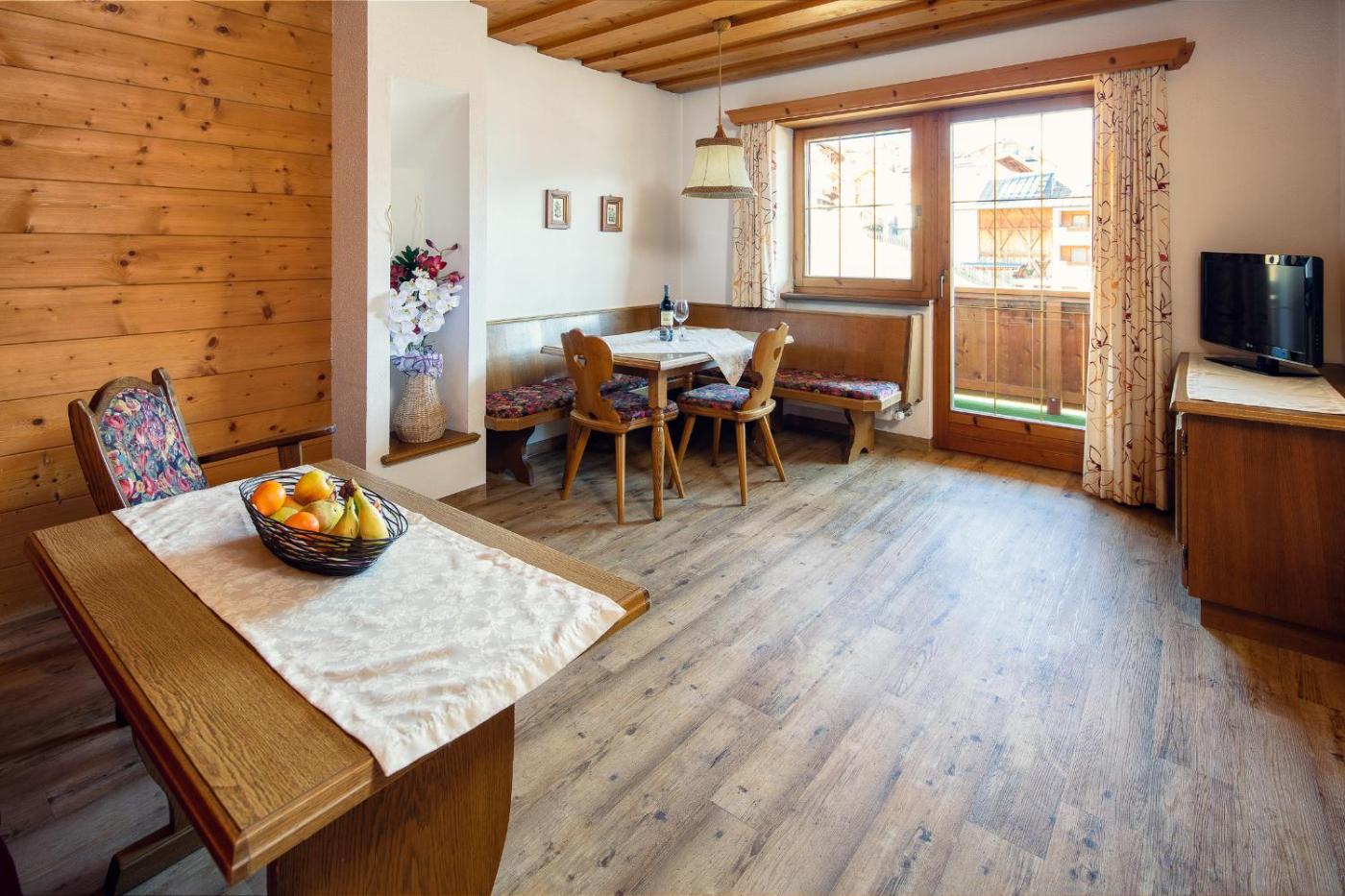 Standard One-Bedroom Apartment. These apartments have a double room, a living room with a double sofa bed, and a bathroom with a shower or tub and partially a separate toilet. They also have living room, cable TV, and a kitchenette with a dishwasher and dining area. Some units have a balcony with mountain views. ;
