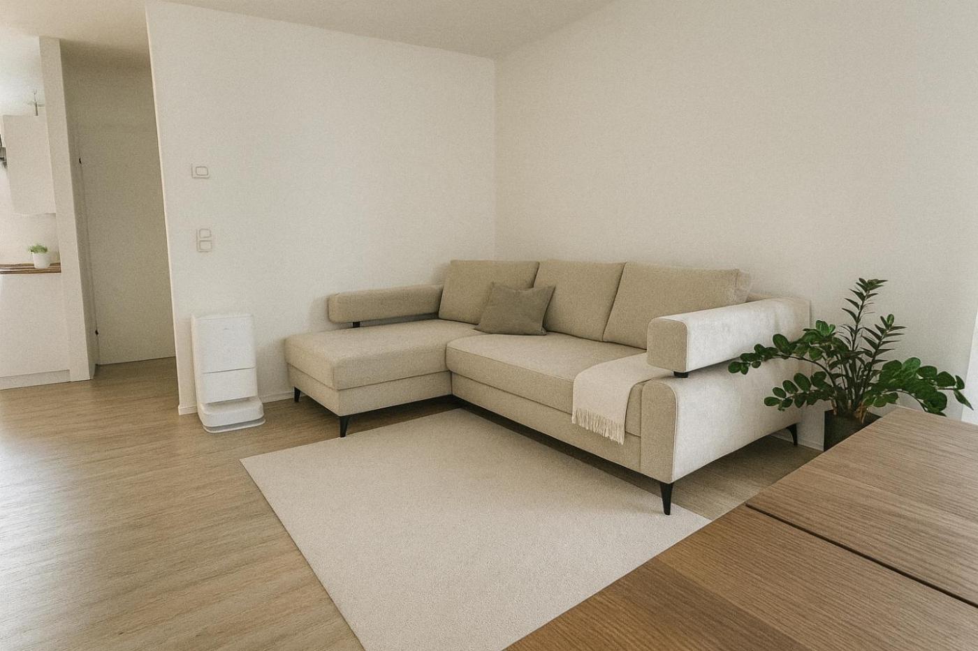 The spacious apartment is composed of 2 bedrooms, a living room, a fully equipped kitchen, and 1 bathroom.