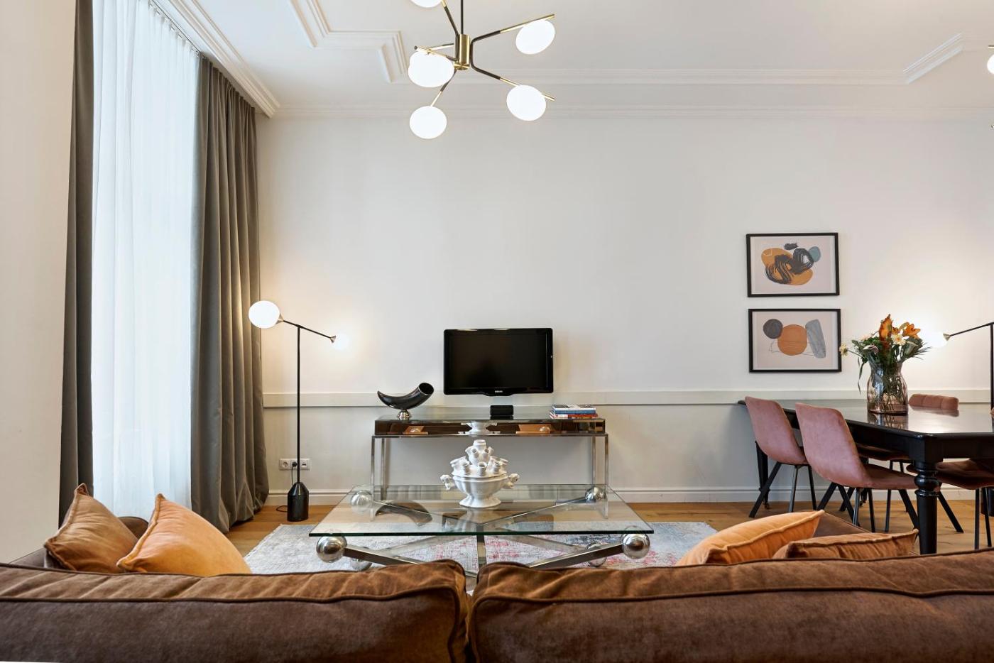 The air-conditioned apartment consists of 1 bedroom, a living room, a fully equipped kitchen with a dishwasher and a coffee machine, and 1 bathroom with a walk-in shower and a hair dryer. Towels and bed linen are offered in the apartment. This apartment is allergy-free and non-smoking.