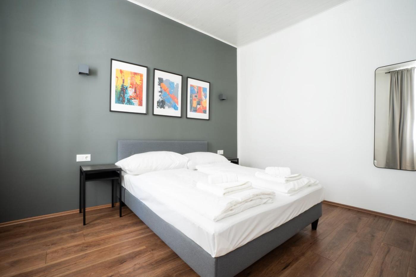 Two-Bedroom Apartment. This apartment consists of 1 living room, 2 separate bedrooms and 1 bathroom with a hairdryer. The apartments kitchen, which features a refrigerator and a microwave, is available for cooking and storing food. The apartment provides a flat-screen TV, a washing machine, a tea and coffee maker and heating. The unit offers 2 beds.