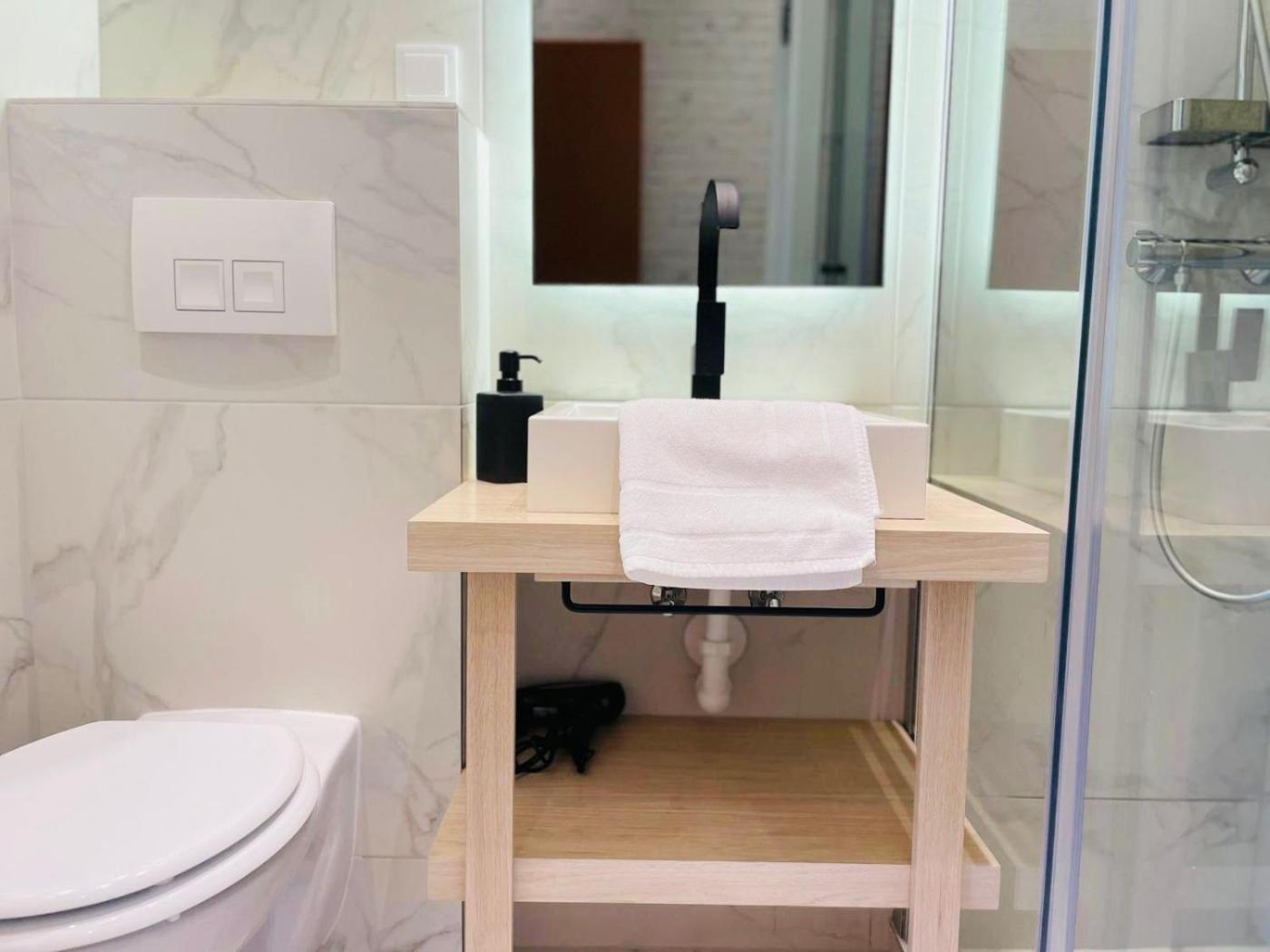 One-Bedroom Apartment. This apartment comes with 1 living room, 1 separate bedroom and 1 bathroom with a walk-in shower and free toiletries. Guests can make meals in the kitchen that features a stovetop, a refrigerator, kitchenware and a microwave. This apartment has a coffee machine, flat-screen TV with streaming services, a quiet street view, as well as winechampagne for guests. The unit has 2 beds.
